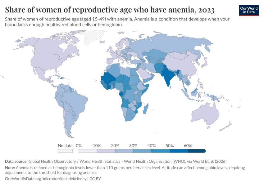 Hannah Ritchie (2024) - “Billions of people suffer from anemia, but there are cheap ways to reduce this” Published online at OurWorldinData.org. Retrieved from: 'https://data-lexicalindex-indicators.owid.pages.dev:8789/20260202-181317/billions-people-suffer-anemia-cheap-ways-reduce.html' [Online Resource] (archived on February 2, 2026).BibTeX citation