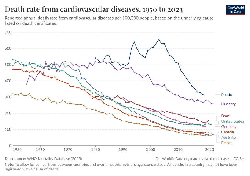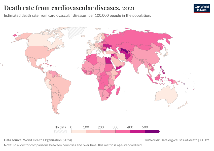Saloni Dattani, Veronika Samborska, Hannah Ritchie, and Max Roser (2023) - “Cardiovascular Diseases” Published online at OurWorldinData.org. Retrieved from: 'https://data-lexicalindex-indicators.owid.pages.dev/cardiovascular-diseases' [Online Resource]BibTeX citation
