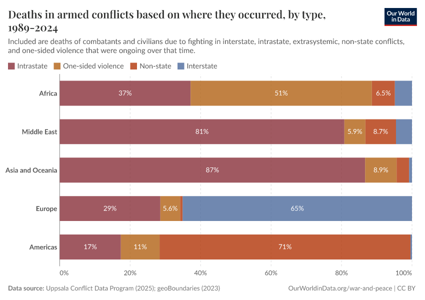 Bastian Herre (2024) - “Millions have died in conflicts since the Cold War; most of them in Africa and intrastate conflicts” Published online at OurWorldinData.org. Retrieved from: 'https://data-lexicalindex-indicators.owid.pages.dev:8789/20251125-173858/conflict-deaths-breakdown.html' [Online Resource] (archived on November 25, 2025).BibTeX citation