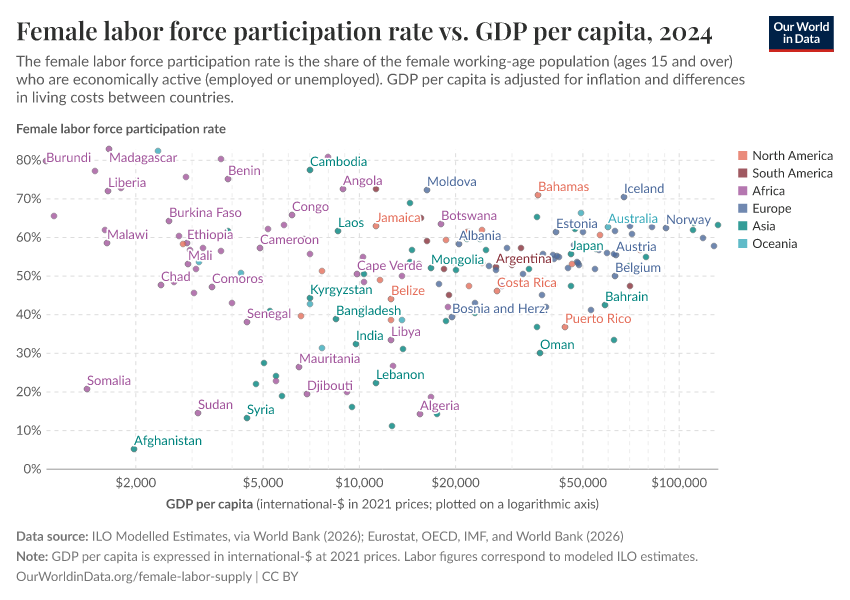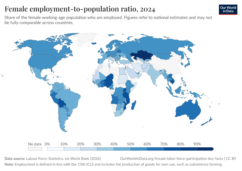 Esteban Ortiz-Ospina, Sandra Tzvetkova, and Max Roser (2018) - “Women's Employment” Published online at OurWorldinData.org. Retrieved from: 'https://data-lexicalindex-indicators.owid.pages.dev/female-labor-supply' [Online Resource]BibTeX citation