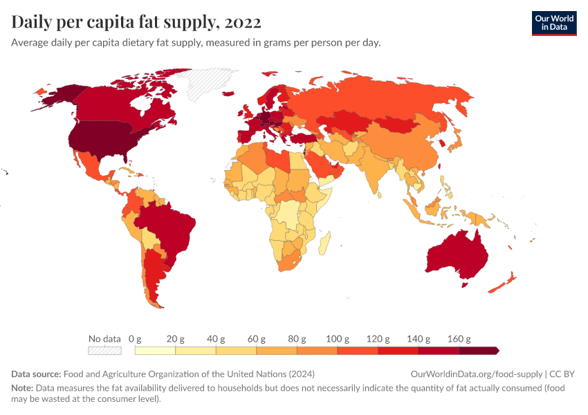 World map of fat supply