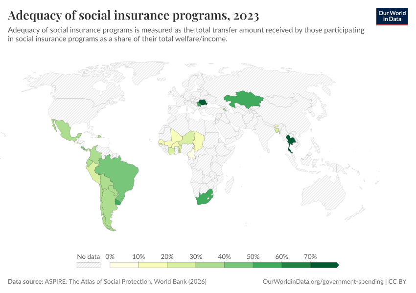 “Data Page: Adequacy of social insurance programs”. Our World in Data (2026). Data adapted from ASPIRE: The Atlas of Social Protection, World Bank. Retrieved from https://data-lexicalindex-indicators.owid.pages.dev:8789/20260202-181317/grapher/adequacy-of-social-insurance-programs.html [online resource] (archived on February 2, 2026).How to cite this data
