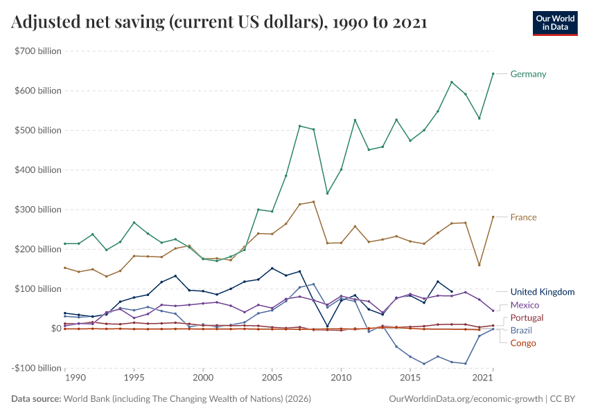 “Data Page: Adjusted net saving (current US dollars)”. Our World in Data (2026). Data adapted from World Bank (including The Changing Wealth of Nations). Retrieved from https://data-lexicalindex-indicators.owid.pages.dev:8789/20260202-181317/grapher/adjusted-net-saving-current-us-dollars.html [online resource] (archived on February 2, 2026).How to cite this data