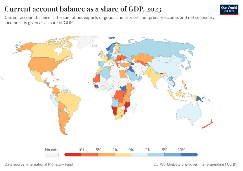 “Data Page: Current account balance as a share of GDP”. Our World in Data (2026). Data adapted from International Monetary Fund. Retrieved from https://data-lexicalindex-indicators.owid.pages.dev:8789/20251120-211749/grapher/current-account-balance-as-a-proportion-of-gdp.html [online resource] (archived on November 20, 2025).How to cite this data