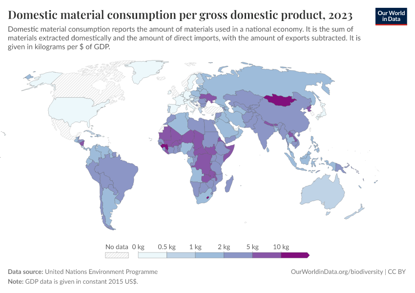 “Data Page: Domestic material consumption per gross domestic product”. Our World in Data (2026). Data adapted from United Nations Environment Programme. Retrieved from https://data-lexicalindex-indicators.owid.pages.dev:8789/20260130-180113/grapher/domestic-material-consumption-per-unit-of-gdp.html [online resource] (archived on January 30, 2026).How to cite this data