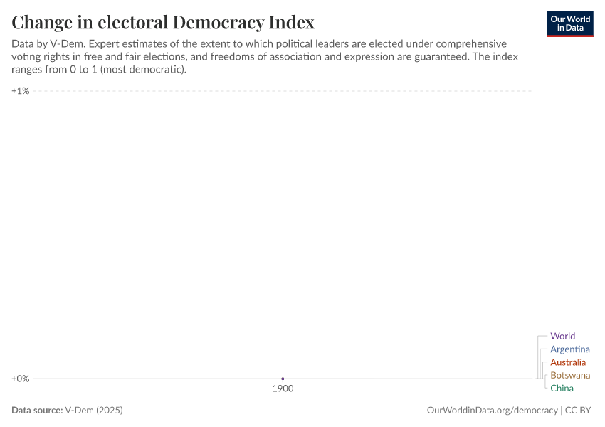 “Data Page: Electoral democracy index”, part of the following publication: Bastian Herre, Lucas Rodés-Guirao, and Esteban Ortiz-Ospina (2013) - “Democracy”. Data adapted from V-Dem. Retrieved from https://data-lexicalindex-indicators.owid.pages.dev:8789/20260119-070102/grapher/electoral-democracy-index.html [online resource] (archived on January 19, 2026).