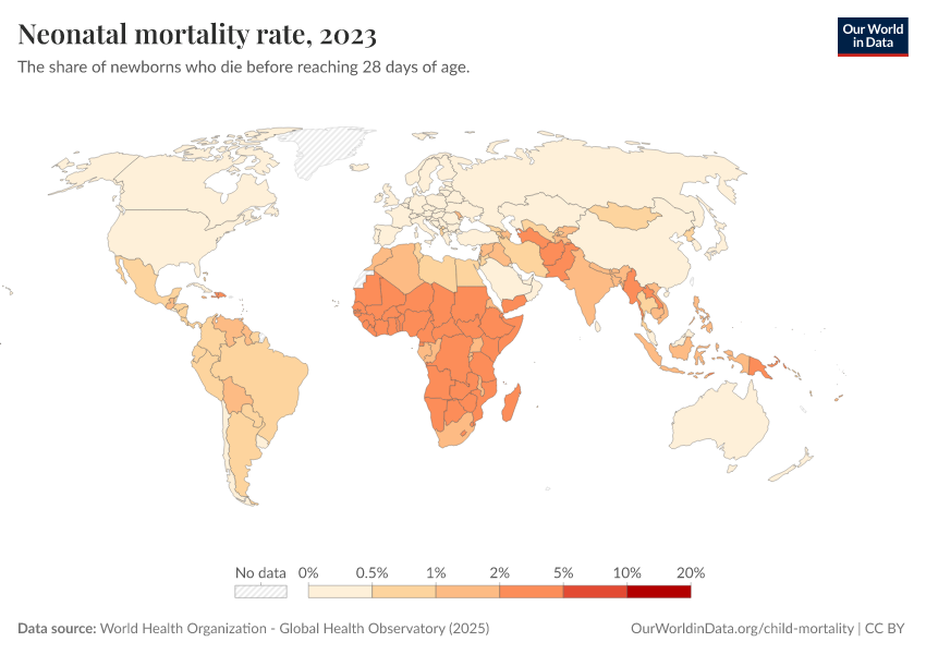 World Health Organization - Global Health Observatory (2025) – processed by Our World in Data. “Neonatal mortality rate” [dataset]. World Health Organization, “Global Health Observatory” [original data]. Retrieved February 9, 2026 from https://data-lexicalindex-indicators.owid.pages.dev:8789/20260119-070102/grapher/neonatal-mortality-rate-gho.html (archived on January 19, 2026).
