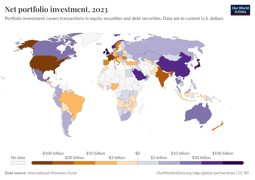 International Monetary Fund – processed by Our World in Data. “Net portfolio investment” [dataset]. International Monetary Fund, “International Monetary Fund, Balance of Payments Statistics Yearbook and data files.” [original data]. Retrieved February 9, 2026 from https://data-lexicalindex-indicators.owid.pages.dev:8789/20260130-180113/grapher/net-portfolio-investment.html (archived on January 30, 2026).