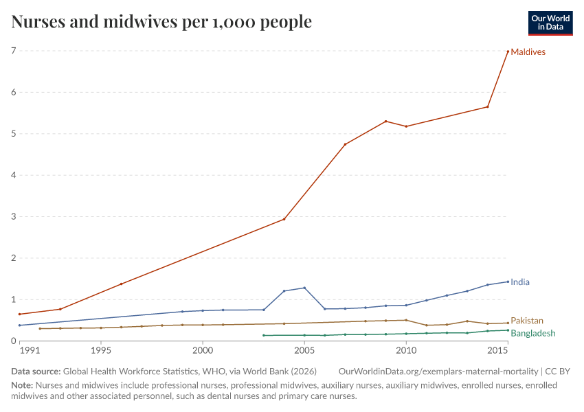“Data Page: Nurses and midwives per 1,000 people”. Our World in Data (2026). Data adapted from Global Health Workforce Statistics, WHO, via World Bank. Retrieved from https://data-lexicalindex-indicators.owid.pages.dev:8789/20260202-181317/grapher/nurses-and-midwives-per-1000-people.html [online resource] (archived on February 2, 2026).