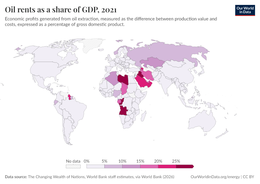 “Data Page: Oil rents as a share of GDP”. Our World in Data (2026). Data adapted from The Changing Wealth of Nations, World Bank staff estimates, via World Bank. Retrieved from https://data-lexicalindex-indicators.owid.pages.dev:8789/20260202-181317/grapher/oil-rents-as-a-share-of-gdp.html [online resource] (archived on February 2, 2026).How to cite this data
