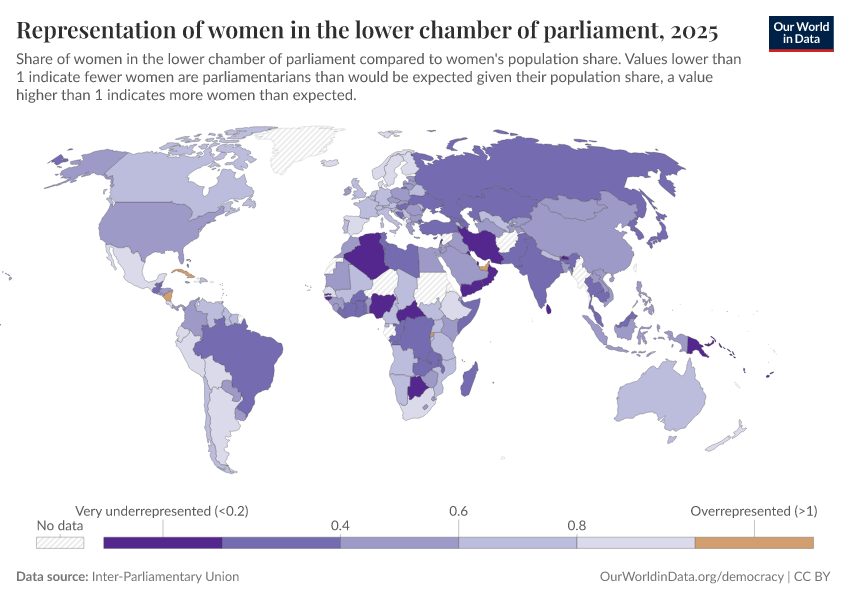 “Data Page: Representation of women in the lower chamber of parliament”. Our World in Data (2026). Data adapted from Inter-Parliamentary Union. Retrieved from https://data-lexicalindex-indicators.owid.pages.dev:8789/20260130-180113/grapher/representation-of-women-in-lower-chamber-of-parliament.html [online resource] (archived on January 30, 2026).How to cite this data