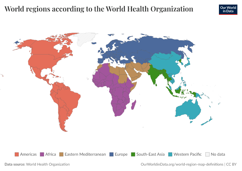 “Data Page: World regions according to the World Health Organization”. Our World in Data (2026). Data adapted from World Health Organization. Retrieved from https://data-lexicalindex-indicators.owid.pages.dev:8789/20251112-060124/grapher/who-regions.html [online resource] (archived on November 12, 2025).How to cite this data