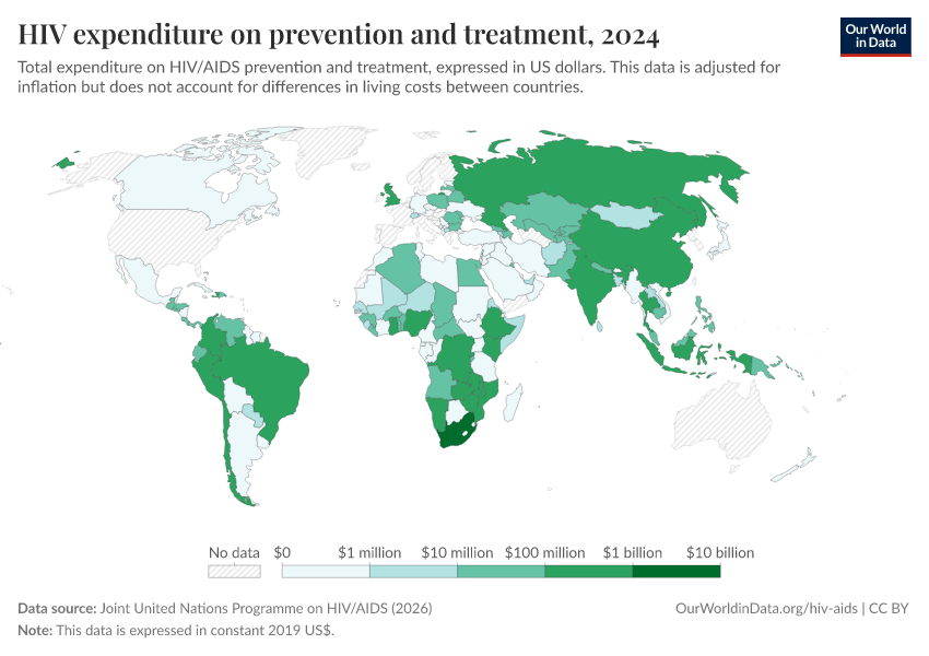 Max Roser and Hannah Ritchie (2023) - “HIV / AIDS” Published online at OurWorldinData.org. Retrieved from: 'https://data-lexicalindex-indicators.owid.pages.dev/hiv-aids' [Online Resource]BibTeX citation