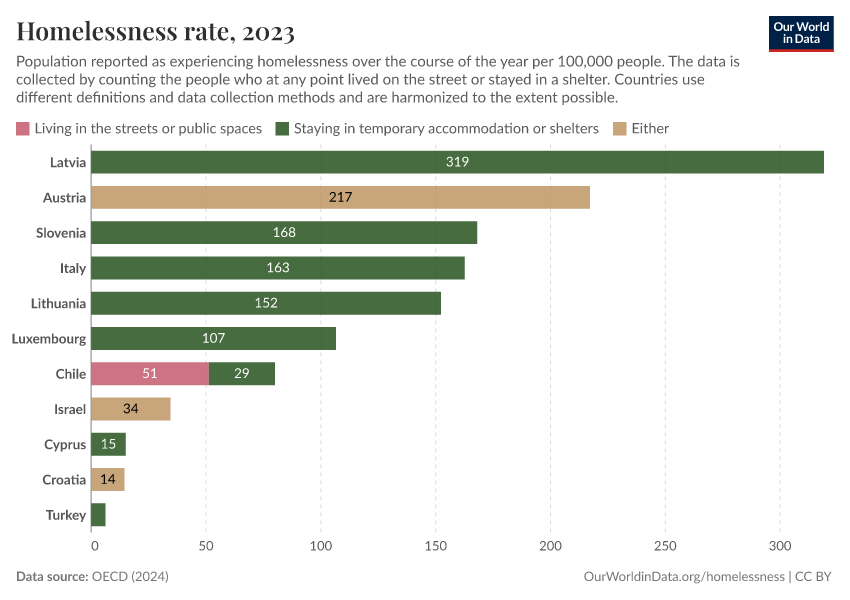 Bastian Herre and Pablo Arriagada (2024) - “Homelessness” Published online at OurWorldinData.org. Retrieved from: 'https://data-lexicalindex-indicators.owid.pages.dev/homelessness' [Online Resource]BibTeX citation