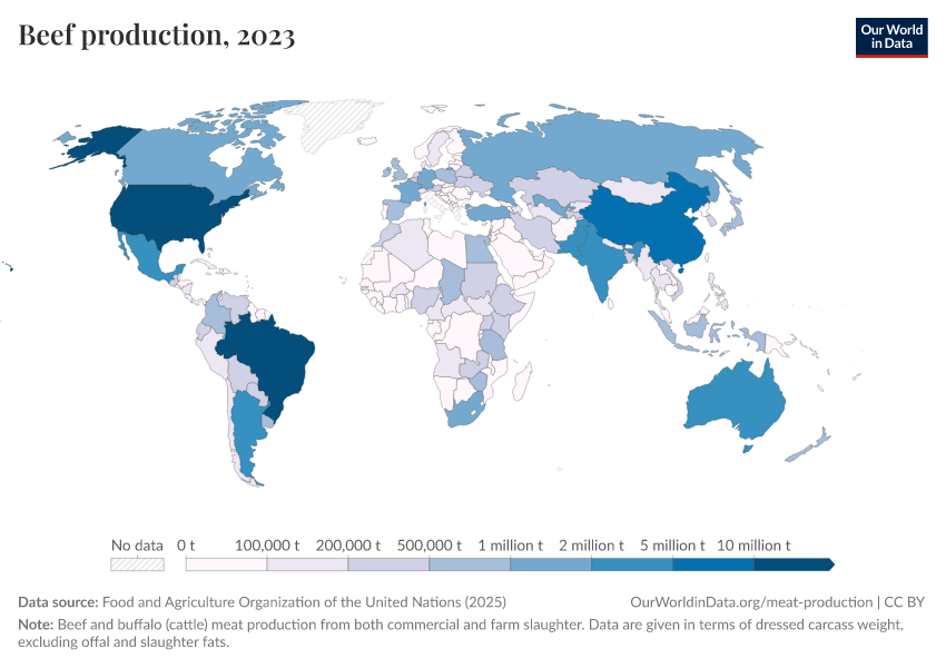 Hannah Ritchie, Pablo Rosado, and Max Roser (2019) - “Meat and Dairy Production” Published online at OurWorldinData.org. Retrieved from: 'https://data-lexicalindex-indicators.owid.pages.dev/meat-production' [Online Resource]BibTeX citation