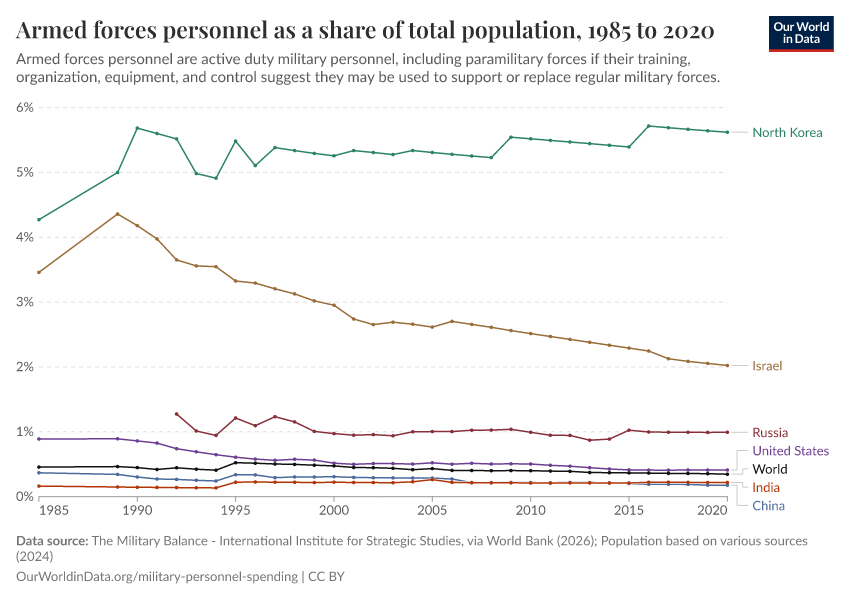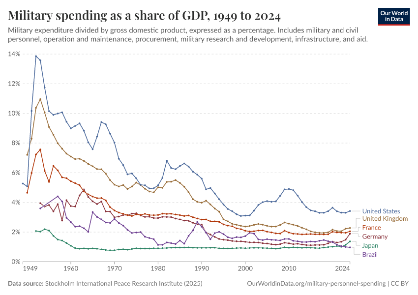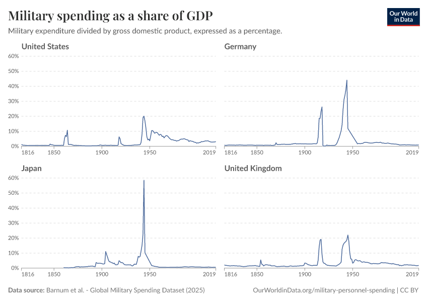 Esteban Ortiz-Ospina (2018) - “Long-run trends in military spending and personnel: four key facts from new data” Published online at OurWorldinData.org. Retrieved from: 'https://data-lexicalindex-indicators.owid.pages.dev:8789/20260202-181317/military-long-run-spending-perspective.html' [Online Resource] (archived on February 2, 2026).BibTeX citation