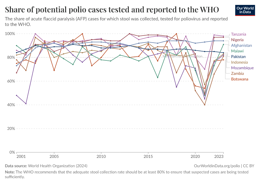 Saloni Dattani and Fiona Spooner (2022) - “We need more testing to eradicate polio worldwide” Published online at OurWorldinData.org. Retrieved from: 'https://data-lexicalindex-indicators.owid.pages.dev:8789/20260119-065148/polio-testing.html' [Online Resource] (archived on January 19, 2026).BibTeX citation