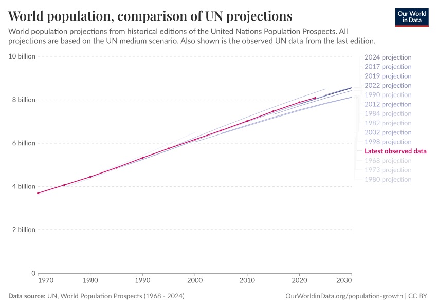 Hannah Ritchie (2023) - “The UN has made population projections for more than 50 years – how accurate have they been?” Published online at OurWorldinData.org. Retrieved from: 'https://data-lexicalindex-indicators.owid.pages.dev:8789/20251125-173858/population-projections.html' [Online Resource] (archived on November 25, 2025).BibTeX citation